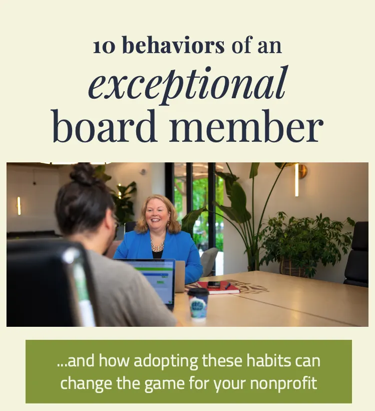 Sign up below and get instant access to 10 Behaviors of Exceptional Board Members — a clear, actionable resource you can use to reset expectations and elevate how your board shows up.